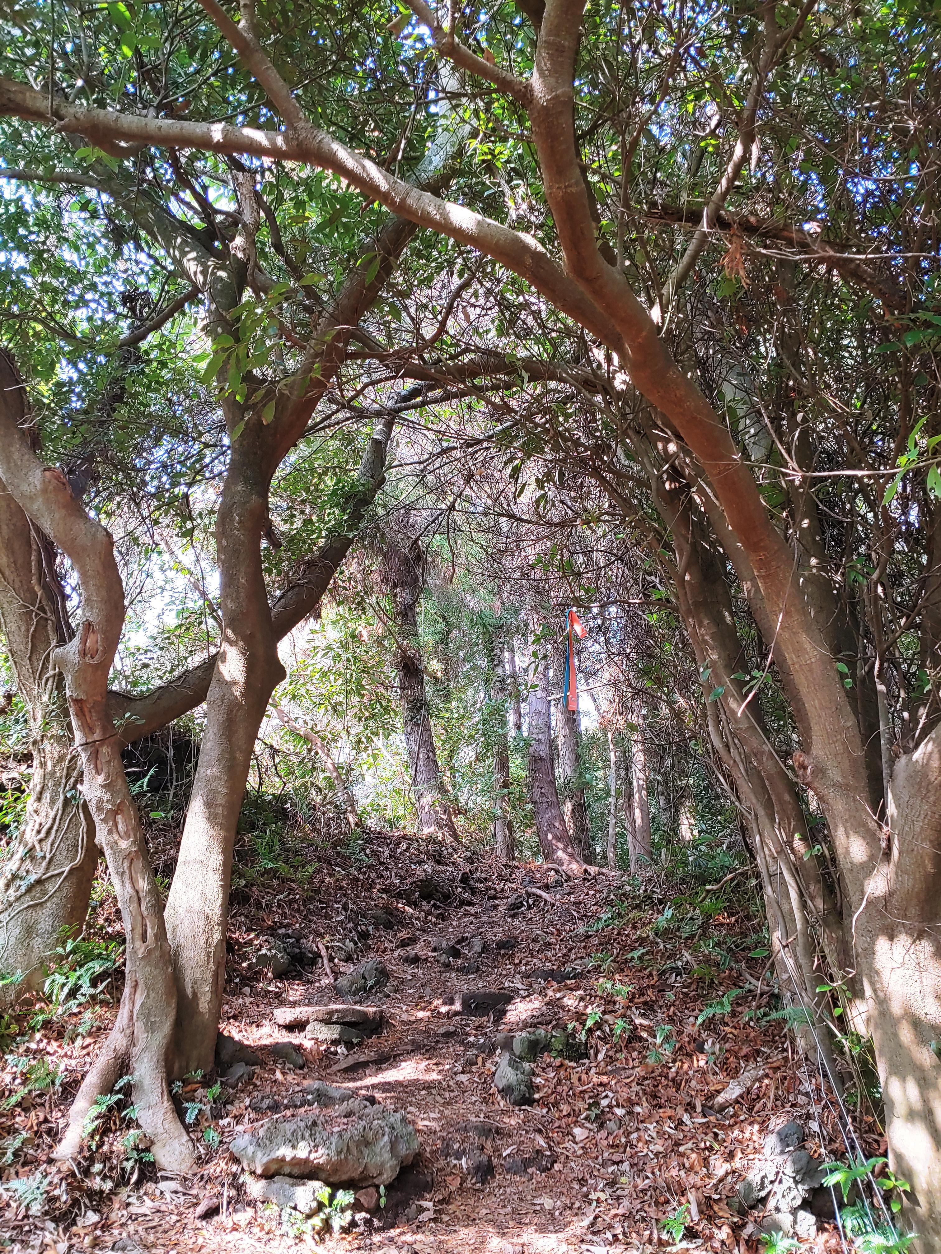 아이스크림은 진한 녹차맛에 정말 맛있었고 달빛걷기는 향긋하고 따뜻했다. 차는 다 마시면 따뜻한 물을 더 받아와서 다시 우려 먹을 수 있다. 먹고 뒤쪽으로 가면 올레길 14-1코스로 갈 수 있다. 저지곶자왈로 들어가는 입구로 들어가서 조금 걷다가 둘째가 발목이 안 좋아 돌아왔다.