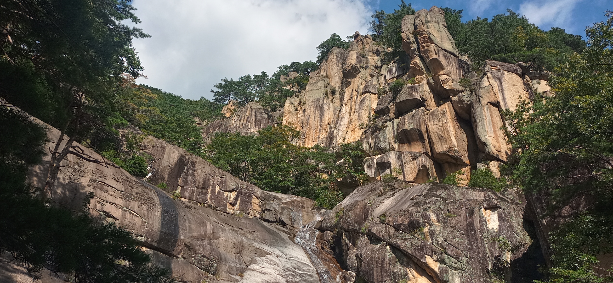 무릉반석을 지나 용추폭포로 간다. 가는길에 삼화사에 들려 삼배를 드리고 계속 길을 간다. 가는 길에 계속 양옆으로 보이는 돌들이 눈을 휘둥그레 하게 한다. 화강암은 너무 멋진 경치를 만든다. 학소대 위를 조금 올라가면 옆으로 바위절벽이 절경을 이룬다.